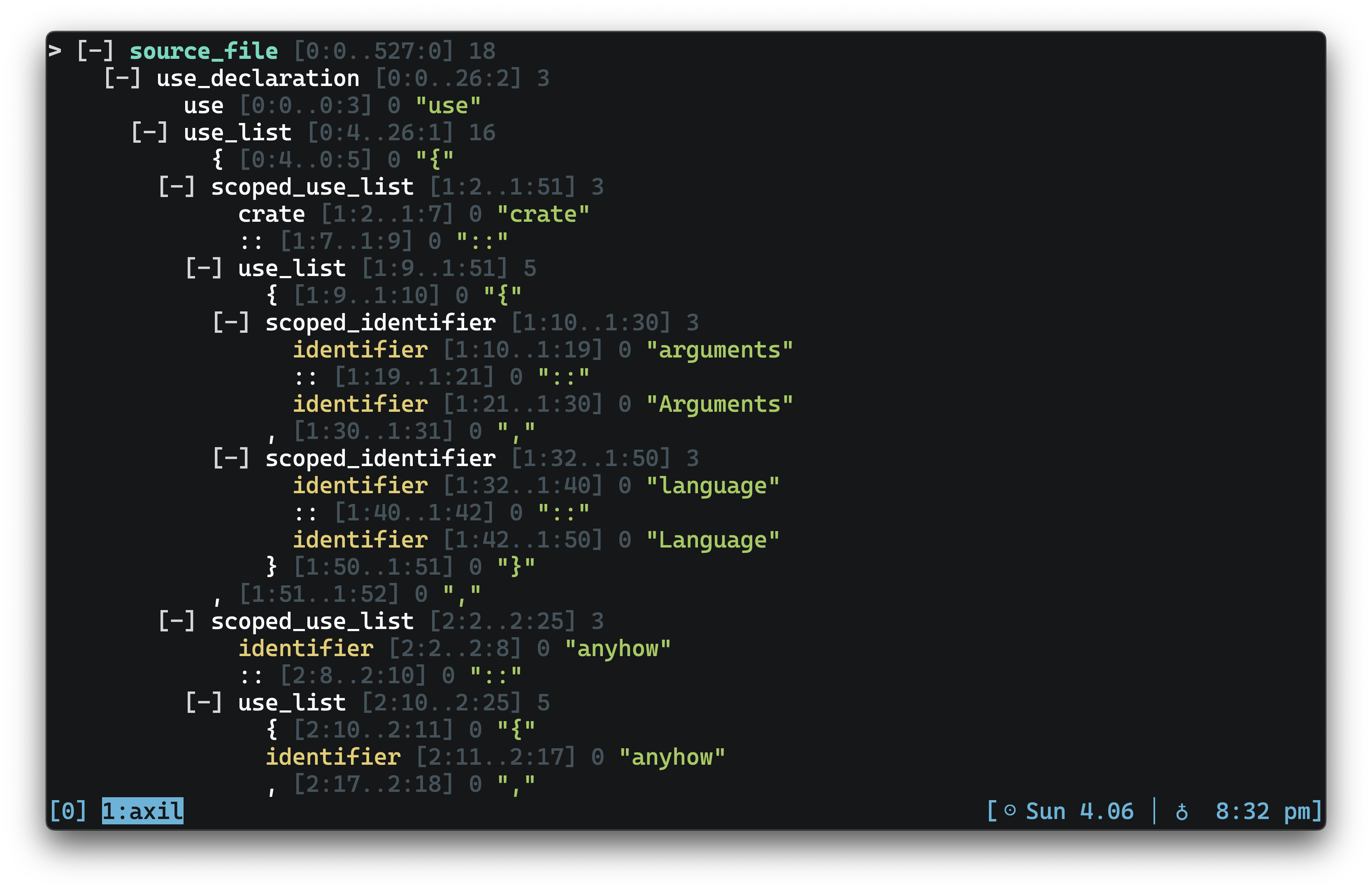 axil lets you interactively view the parsed syntax given by treesitter for a file in any supported language.